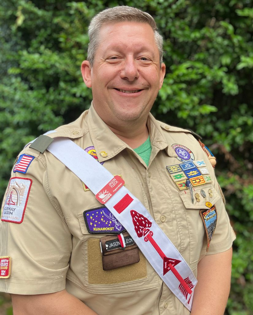 A dedicated Scouter through and through, Jason is committed to the success of the Order of the Arrow and the Scouting program. An Eagle Scout, Jason has served in a wide range of leadership capacities, including Cubmaster, Scoutmaster, committee chair, and OA chapter adviser. He has also contributed his time as a Wood Badge staffer and provisional Scoutmaster. Currently, Jason serves as the chartered organization representative for his local troop and as the Finance adviser for Kunamokst Lodge. Outside of Scouting, Jason is a licensed health insurance agent who enjoys camping, the outdoors, and occasional event catering.