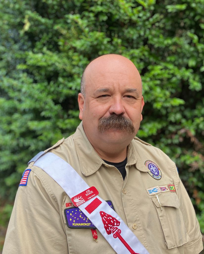 Joe Raade is a dedicated and experienced Scouter, currently serving as the lodge adviser for Kunamokst, a role they have held since the lodge’s inception in 2025. In this position, Joe serves as the principal adviser to the lodge chief, guiding and mentoring youth officers in developing leadership skills and planning the lodge’s program of cheerful service.