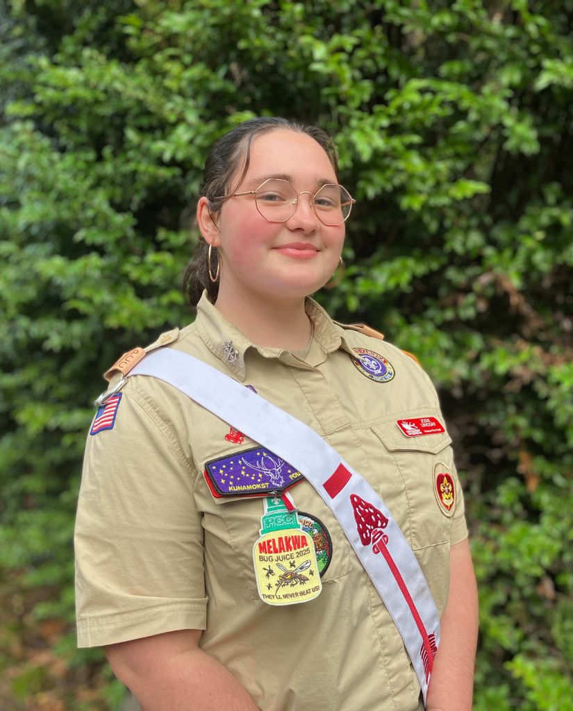 Originally from Washington, Linna moved to Bend, Oregon, where she began her Scouting journey with Troop 101. She has held several key leadership roles, including senior patrol leader and assistant senior patrol leader. Since joining the Order of the Arrow, she has served as chapter chief for Hyas Lamonte and vice chief of ceremonies for Lo La’Qam Geela Lodge. Linna currently serves as the president of Central Oregon’s first Venturing Crew and the ceremonies vice chief for Kunamoskt Lodge. Her favorite Scouting memories include her trek at Florida Sea Base and her time on staff at Camp Baker.