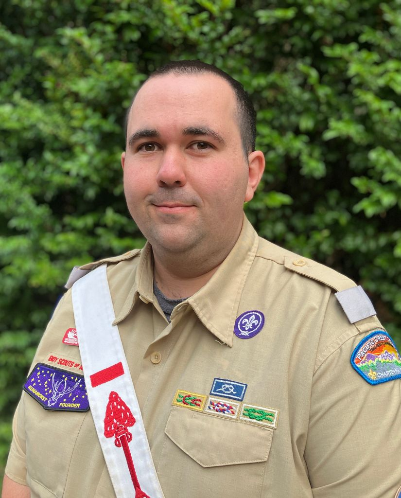 His adult service spans every level of the organization, from assistant Scoutmaster to administrative and membership adviser for Tsisqan Lodge. A veteran of the NOAC staff (2018, 2022, and 2024), Matthew also led the Section G16 Communications Team as lead adviser for nine years. Currently, he serves on the Camp Mooney Property Committee, acts as the council webmaster, and is the social media adviser for the OA’s National Communications Committee (NCC).
