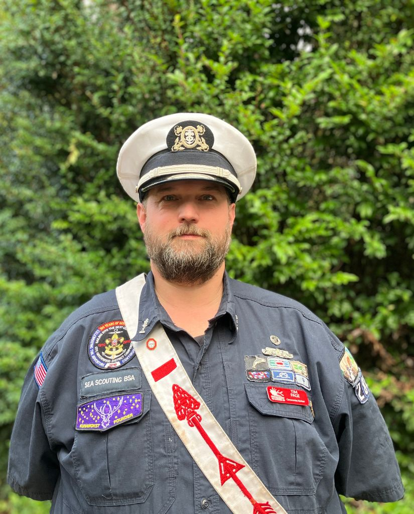 Tim Page is the Skipper of Sea Scout Ship 5282, Sea Wolf. A lifelong Scouter, Tim began his journey at age seven, eventually earning the rank of Eagle Scout in 1997 and the Vigil Honor in 1999. He is both Wood Badge and Sea Badge trained, and has shared his expertise as a staff member for both programs and as a SEAL instructor for Sea Scouting. Tim is excited to return to his Order of the Arrow roots as the Kunamokst Lodge ceremonies adviser.